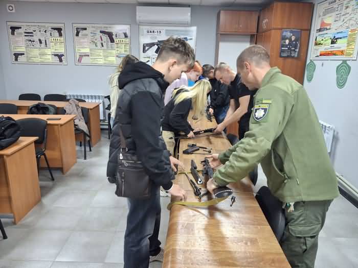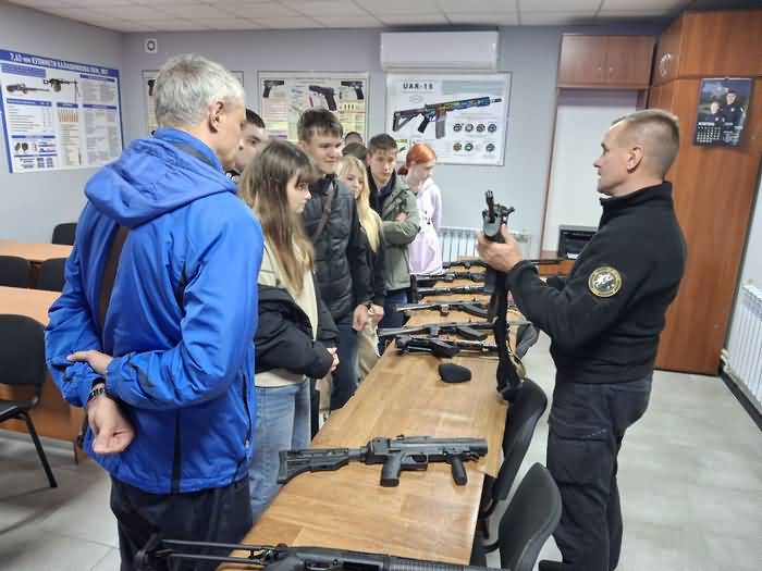 В рамках заходу студенти відвідали спеціально облаштовану аудиторію для практичних занять. Це стало кульмінацією візиту, адже тут кожен охочий зміг спробувати себе у поводженні з навчальною зброєю під наглядом кваліфікованих інструкторів.